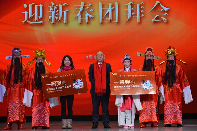 在哈三聯(lián)的年會(huì)上,更少不了抽獎(jiǎng)和游戲環(huán)節(jié),雙立人鍋具套裝、虎牌電熱水壺、景德鎮(zhèn)生肖瓷盤、仙芙面膜,各種大獎(jiǎng)將晚會(huì)氣氛一次次推向高潮。