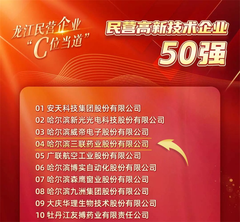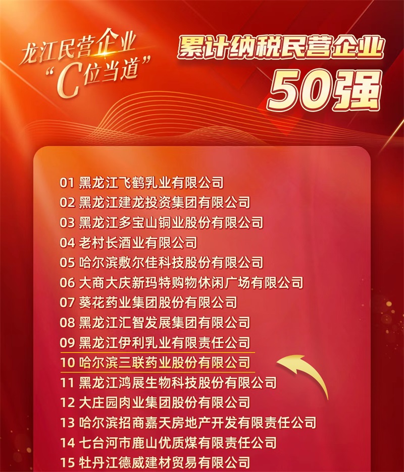 哈三聯(lián)作為一家民營(yíng)上市企業(yè),多年來始終立足服務(wù)區(qū)域經(jīng)濟(jì)與龍江社會(huì)發(fā)展,誠(chéng)信守法經(jīng)營(yíng)、履行社會(huì)職責(zé),被國(guó)家稅務(wù)總局納入“全國(guó)千戶集團(tuán)總部企業(yè)”,連續(xù)四年入選“中國(guó)化藥企業(yè)TOP100榜單”。企業(yè)將以此次民營(yíng)經(jīng)濟(jì)發(fā)展大會(huì)為契機(jī),在實(shí)現(xiàn)自身高質(zhì)量發(fā)展的同時(shí),為開創(chuàng)我省民營(yíng)經(jīng)濟(jì)新局面貢獻(xiàn)新力量。